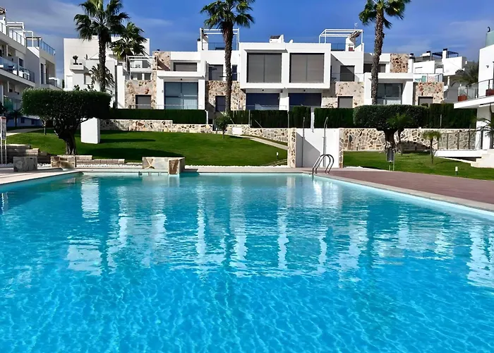 Situé à environ 4 km du Palais royal de Madrid, Appartement neuf avec terrasse et piscine proche plages de Torrevieja Los Altos surplombe le jardin. Pour les clients en quête d'un séjour actif, la résidence spacieuse donne accès au parcours de golf.